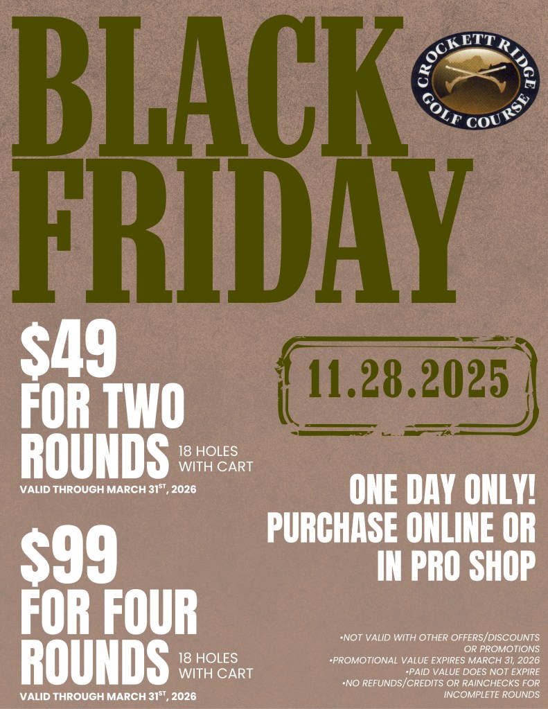 * NOT VALID WITH OTHER OFFERS/DISCOUNTS OR PROMOTIONS* PROMOTIONAL VALUE EXPIRES MARCH 31ST, 2026 * PAID VALUE DOES NOT EXPIRE *NO REFUNDS/CREDITS OR REFUNDS FOR INCOMPLETE ROUNDS